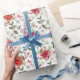 Ajoutez un accent floral festif à vos cadeaux avec cet élégant papier d'emballage à motifs floraux de Noël. Il présente un motif floral aquarelle de poinsettias rouges, de blancs de papier, de saints et de baies. Ce papier d'emballage botanique de Noël est disponible en d'autres couleurs.