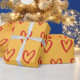 Papier Cadeau Rouge sur les coeurs à main jaune