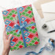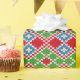 Le papier d'emballage festif a un motif nordique tricoté rouge, vert, bleu et blanc. (Ou comme certains l'appellent, "motif moche en pull" !