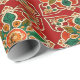 Papier Cadeau Rouge Vert Orange Jaune Azulejos Motif Floral