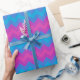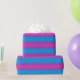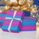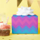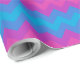 Un rouleau de papier d'enveloppement très design, avec un motif motif de chevrons violets, magenta et bleus.
