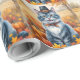 Papier Cadeau Russe Bleu Chat Automne quitte Thanksgiving Art