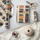 Earthy geometric pattern wrapping paper inspired by tribal mudcloth textiles, featuring hand-painted rectangles, diamonds, and triangles in charcoal black and terracotta on a textured beige background. A warm boho design ideal for rustic décor lovers, artisan style fans, and anyone drawn to earthy geometric aesthetics.