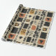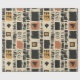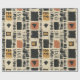 Earthy geometric pattern wrapping paper inspired by tribal mudcloth textiles, featuring hand-painted rectangles, diamonds, and triangles in charcoal black and terracotta on a textured beige background. A warm boho design ideal for rustic décor lovers, artisan style fans, and anyone drawn to earthy geometric aesthetics.