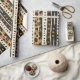 Warm geometric stripe pattern wrapping paper featuring tribal-inspired diamonds, zigzags, and textured vertical bands in earthy brown, terracotta, tan, beige, and charcoal tones. A cozy boho design ideal for southwestern décor lovers, rustic style fans, and anyone drawn to earthy, handcrafted aesthetics.