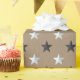Un papier d'emballage festif pour la période des fêtes de Noël avec des étoiles noires et argentées sur un arrière - plan en papier kraft rustique. Idéal pour toute occasion et fait un emballage cadeau impressionnant.