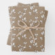 Un élégant papier d'emballage blanc de vacances avec un arrière - plan kraft rustique avec 3 motifs de petites tiges de feuilles.
