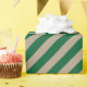 Un papier d'emballage de vacances couleur kraft rustique avec des rayures vert forêt sur la diagonale.