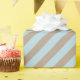 Un papier d'emballage de vacances couleur kraft rustique avec de larges rayures bleu pâle sur la diagonale.