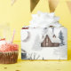 Papier cadeau Cabine de la forêt d'hiver de Noël de neige rustique. Option permettant de changer l'arrière - plan en couleur.