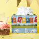 Des sacs de courses en papier colorés sont suspendus à un fil à linge à l'extérieur sur un ciel d'été, avec le mot "Soldes" affiché bien en vue