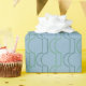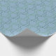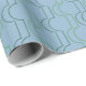 Ce papier d'emballage a un design art déco de demi-cercles verts se connectent avec des lignes sur un champ de bleu.