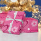 Papier d'emballage rose pour la Saint-Valentin aux formes de coeur et de fleurs