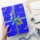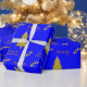 Papier Cadeau Salutation de saison Blue Gold Trees Wrapping Papi