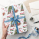 Le motif répété sur ce papier d'emballage de Noël comprend l'image d'un beau chien blanc Samoyed portant un arc rouge festif. Le chien est assis devant un Holiday tree décoré. Le texte rouge et vert stylisé dit MERRY CHRISTMAS", et votre propre signature est dans deux champs pour vous de customiser. Parmi les autres images incluses dans la motif, on trouve des flocons de neige décoratifs rouges, des sucres de canne et une lolly pop menthe poivrée. Mignonne !