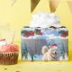 Papier Cadeau Samoyed Running en neige avec Casquette de Noël