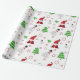 Santa Claus, motifs de bonhomme de neige et de pins/Papier à enveloppement