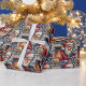 Papier Cadeau Santa Claus Oriental Blue Cat Christmas Art