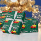 Santa Claus penguin cartoon in truck fun Christmas Wrapping Paper . Red toy dump truck with Santa bird, snow flakes and personalized name of child. Fun gift wrap design for children and babies. Adorable winter dump truck illustration for kids. Green or custom background color. Available in matte and glossy rolls.