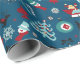 Papier Cadeau Santa Claus Sleigh Reindeer Pine Trees Art Motif