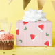 Cute pink and red wrapping paper with scattered Santa hats and tiny holidays icons. A playful and modern twist on classic Christmas themes.