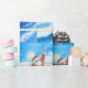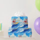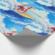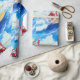 Wrap your gifts with sunshine and surf! This modern watercolor wrapping paper features Santa Claus surfing on turquoise waves in a red surf suit with a Christmas-themed surfboard decorated with candy-cane stripes, holly, and stars.