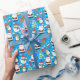 Ce papier d'emballage adorable avec des santas, des rudolphes, des bonhomme de neige et des pingouins en bleu aurait l'air fabuleux sur vos cadeaux ! C'est festif et amusant. Obtenez assez pour envelopper tous vos cadeaux.