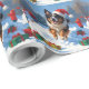 Illustration de vacances pleine de charme avec un chien gai jouant dans la neige, portant un chapeau de Père Noël et entouré de boîtes cadeaux colorées. Dans l'arrière - plan, les enfants construisent un bonhomme de neige à côté d'un sapin de Noël enneigé, créant un merveilleux pays hivernal. Parfait pour répandre la joie des fêtes et capturer la magie de Noël.
