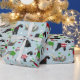 Les mignons Schnauzers de Noël avec sel et poivre et les manteaux noirs et argentés portent des chapeaux de Père Noël, des bois et des chandails de Jacquard sur un arrière - plan bleu avec des ornements épars.