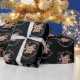 Amusez-vous avec votre emballage cette année avec ce mignon renne de personnage de dessin animé qui souhaite à tous un joyeux Noël et un message personnalisé. Le texte peut être modifié. Caractère de rennes de dessin avec nez brillant rouge avec script blanc sur un arrière - plan noir avec flocons de neige blancs et typographie de script blanc. Si vous avez besoin d'aide pour la personnaliser plus, envoyez-moi un courriel et je serai heureux de vous aider. designsbykatz@gmail.com Joyeuses fêtes!