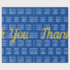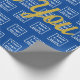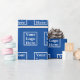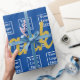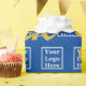 Un grand texte d'affichage indique « Merci » en écriture dorée fausse (et non en feuille d'or). (Si vous le souhaitez, vous pouvez modifier le texte pour afficher un message personnalisé.) Remplacez le fichier logo par le logo de votre entreprise. Votre logo apparaîtra dans un motif sur du papier d'emballage bleu foncé. Le bleu foncé est l'hex #004095.
