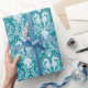 Idéal pour les cadeaux et événements sur le thème de l'océan et du littoral, ce motif en papier d'emballage turquoise, bleu et blanc damassé, présente des hippocampes, des algues, du corail et des coquillages pour une ambiance sous-marine.
