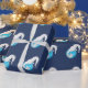 Papier d'emballage bleu tropical de Noël avec hippocampes blancs et ornements de vacances. Tout sur bleu vif la vie marine design sur un rouleau avec options.