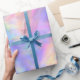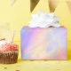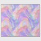 Style des années 2000. Ondes abstraites Holo imirisées aux couleurs tropicales douces. (Cette version de la conception se répète de façon unique tous les 18 pouces de largeur, pour mieux correspondre à la façon dont les rouleaux de papier d'emballage sont imprimés.)