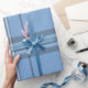 This beautiful wrapping paper features a serene and cool-toned tartan plaid that perfectly captures the tranquility of winter. The soft sky blue background is contrasted with striking, wide bands of dark slate blue/charcoal and defined by crisp white accent lines. This pattern offers a modern, calming, and elegant look, making it an ideal gender-neutral choice for winter birthdays, baby showers, or holiday gifts. Use this sophisticated plaid for a truly peaceful and refined presentation.