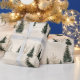 Un paysage hivernal paisible, avec des collines enneigées, des arbres à feuillage persistant éparpillés et des arbres à feuilles caduques aux branches nues. Les flocons de neige tombent doucement, créant une atmosphère douce et apaisante. Dans l'ensemble, la palette de couleurs est tamisée, dans les tons blanc, gris, vert et marron.