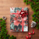 Papier Cadeau Serre de pin avec Fleurs rouges et Holly