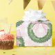 Cette conception a une couronne de bois de boxe Preppy avec un arc en vichy rose.