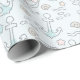 Shark c'est une fille enveloppant du papier avec des ancres, des coquilles, des étoiles en rose doux, aqua et corail.