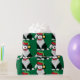 Cartoon mignon Cheepadoodle Noir et Blanc Chiot vêtu de casquette Elfe vert et col elfe rouge. Papier d'emballage vert pâle adorable berceau!