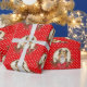 Cette enveloppe-cadeau comporte une étagère de couleur aquarelle, nichée dans une tranche de bois entourée de verdure de Noël. L'arrière - plan est un motif de polkadot rouge et blanc. Parfait pour les amoureux des étagères dans votre vie.