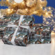 This festive design captures the joyful spirit of the holiday season, featuring an adorable dogs.Nestled in a winter wonderland, complete with a decorated Christmas tree, and beautifully wrapped presents. Snowflakes gently fall, adding a magical touch to the scene, while the vibrant colors of the holiday decorations create a warm and cheerful atmosphere.
