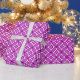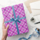 Papier enveloppant dans un Shippo japonais traditionnel, ou "sept trésors" à motifs de cercles enchevêtrés avec un motif de fleurs central - fleurs dans la prune profonde avec une orchidée claire et profonde, violet profond et à motifs blancs arrière - plan