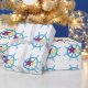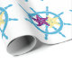 Blue shipwheel with a yellow and purple starfish for a cute nautical vibe.