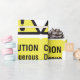Un panneau jaune qui dit prudence machines dangereuses. Cette conception semble vraiment efficace sur ces papiers d'enveloppement