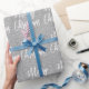 Ce papier d'emballage tendance et élégant comporte les mots "Joyeux Noël" en police de style écriture brosse sur un arrière - plan de fausse parties scintillant argent.