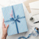 Papier Cadeau Simple Chic Linge Revêtu Motif rayé Bleu clair
