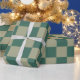 Ce papier d'emballage en damier est vert forêt et sauge.