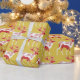 Papier Cadeau Simple Gold Red Reindees Noël Motif Noël