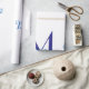 Papier Cadeau simple minimal monogram personalized name blue ret
